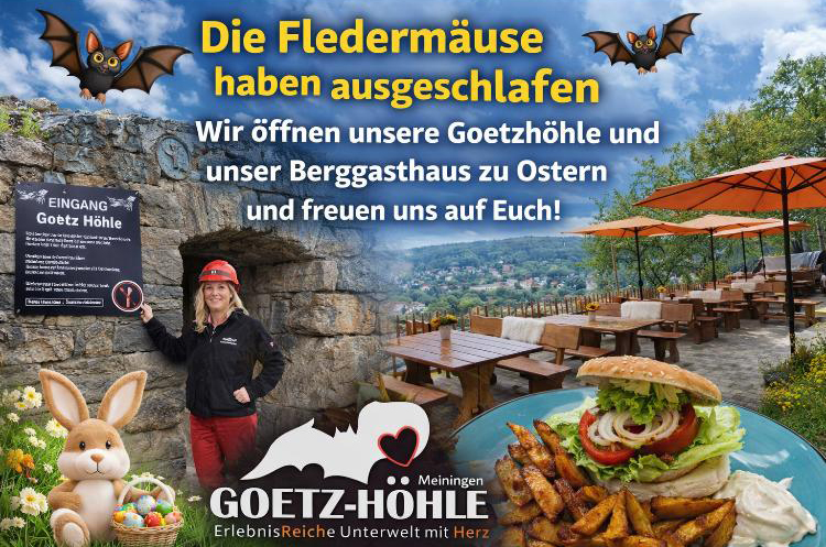 Nach der abenteuerlichen Wanderung durch die „Goetz-Höhle” lädt unser gemütlicher Biergarten und das urige Berggasthaus „Zur Spalte” auf ein herrlich erfrischendes Getränk und ein herzhaftes Vesper ein! Die ruhige Lage im weitläufigen Grün über Meiningen schenkt Entspannung und Erholung pur. Der ideale Ort um mal richtig abzuschalten.